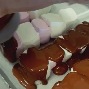 Sweet, fluffy and fun — our Mallow Pop Happy Birthday stacks soft marshmallows on a stick and finishes them with a drizzle of silky Belgian milk chocolate. Rocky-road vibes in a cute, snackable pop.